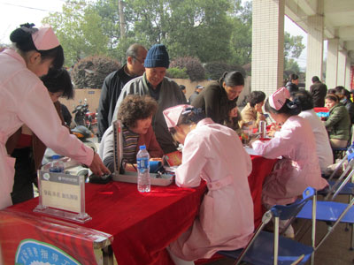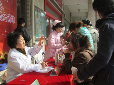 2013年3月15日,在相关部门的邀请下,我院与市社保等部门一同走进位于湖北东路的大润发超市,为市民提供免费健康咨询及血压测量。